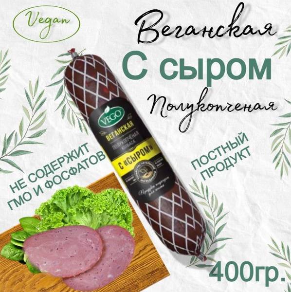 Enjoy the delicious taste of VEGO's vegan smoked cheese sausage! This plant-based delight is packed with protein, fiber, vitamins, and minerals, making it a healthy and flavorful option for breakfast, snacks, or a festive meal. Made in Russia with non-GMO soy, it's perfect for vegetarians, vegans, and those observing lent.
