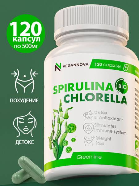 SEO Keywords: Spirulina, Chlorella, VeganNova, Vegan Supplements, Algae Supplements, Superfoods, Detox, Immunity Boost, Energy Boost, Cardiovascular Health, Healthy Cholesterol, Protein, Antioxidants, Chlorophyll, Vegan, Vegetarian, Dietary Supplement, Capsules, 120 Capsules, Health Supplement, Natural Supplement.