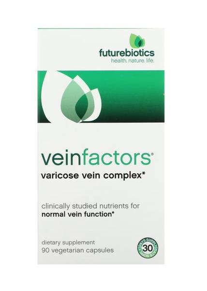 Futurebiotics Veinfactors provides natural varicose vein support with a potent blend of herbal extracts. Take 3 capsules daily with food. Bioperine® (black pepper extract) enhances nutrient absorption, while our unique formula featuring ginger extract, Trikatu, Digezyme®, and Lactospore® promotes optimal digestion and nutrient utilization for superior effectiveness. Experience the difference of Futurebiotics BioAccelerators™ for enhanced bioavailability.