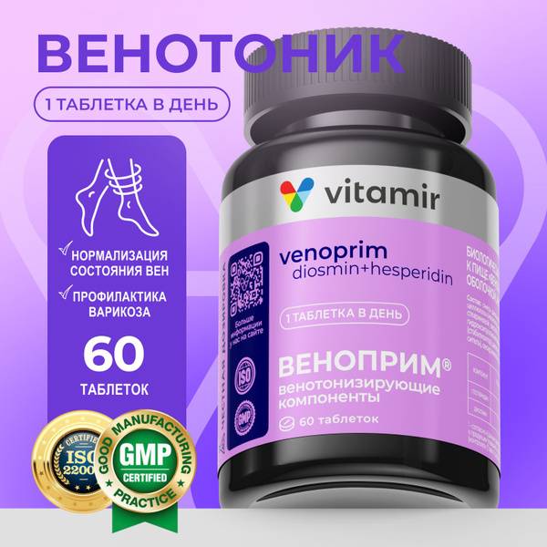 Venoprim VITAMIR PRO is a natural supplement formulated to support healthy veins and vessels. Featuring diosmin and hesperidin, it promotes improved circulation, reduces swelling, and strengthens vessel walls. Ideal for varicose vein prevention and relieving leg discomfort. Experience lighter, healthier legs with Venoprim VITAMIR PRO.