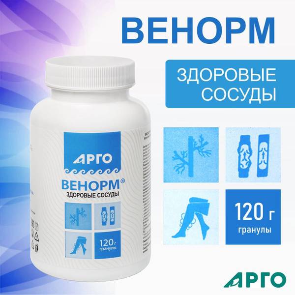 Venorm "Healthy Vessels" granules (120g) from Argo and Biolit offer comprehensive vascular support. This natural remedy is recommended for: