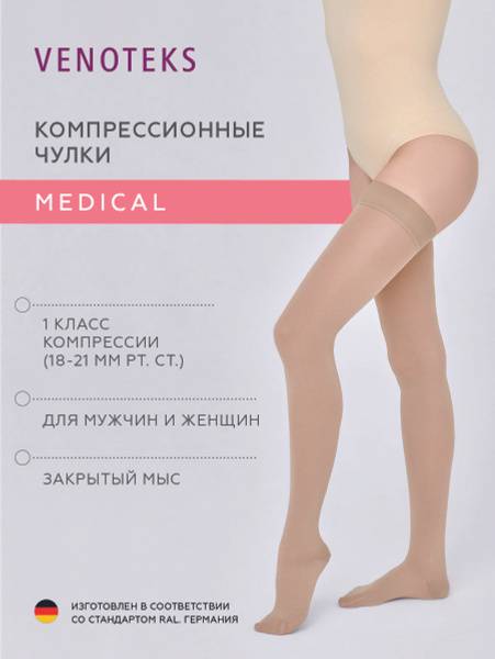 Venoteks Beige Compression Stockings provide gentle yet effective compression therapy (Class 1, 18-21 mmHg) for improved leg health and well-being. These closed-toe stockings are designed for both men and women and are ideal for relieving discomfort associated with: