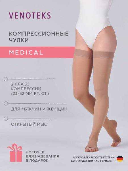 Keywords: compression stockings, compression socks, class 2 compression, varicose veins, venous insufficiency, leg swelling, thrombophlebitis, pregnancy, medical stockings, Venoteks, LYCRA, open toe, microfiber, OEKO-TEX, leg pain, restless legs, night cramps, CVI, venous thrombosis, post-sclerotherapy, men's compression stockings, women's compression stockings, beige stockings, medical compression hosiery.