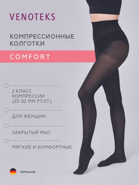 Compression stockings, compression socks, venous insufficiency, varicose veins, leg pain relief, leg swelling, leg cramps, 20-30 mmHg compression, Class 2 compression, VENOTEKS, microfiber stockings, comfortable compression stockings, women's compression stockings, black compression stockings, venous disease, pregnancy varicose veins, leg health.