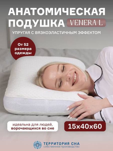 Experience ultimate comfort and support with the Venera L anatomical pillow. Its unique, heat-conductive foam gently cradles your head and neck, adapting to your preferred sleeping position (side, back, or stomach). Offering the soft, plush feel of a down pillow without the drawbacks, Venera L provides exceptional anatomical support without head-sinking or pressure points. The breathable mesh cover promotes airflow, preventing overheating. Designed for those who value both comfort and proper spinal alignment, this pillow is perfect for a restful night's sleep. The removable cover fits a standard 50x70 cm pillowcase. Available in sizes: S (60x40x10 cm), M (60x40x13 cm), and L (60x40x15 cm).