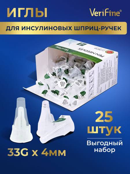Verifine 33G x 4mm Pen Needles for Insulin Pens | Medical Insulin Needles (25 Count)