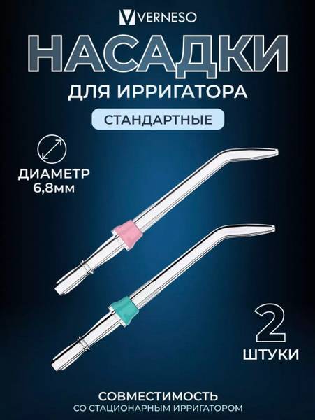 Enhance your oral hygiene routine with this 2-pack of replacement heads compatible with all Verneso water flossers (both portable and stationary). These standard-sized nozzles are perfect for the whole family, providing superior cleaning for everyone, from children to adults.