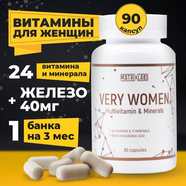 Experience radiant health with VERY WOMEN Multivitamin & Mineral Supplement (90 capsules) by Matrix Labs. This comprehensive formula delivers 24 essential vitamins and minerals, including hyaluronic acid, to support overall well-being and enhance your natural beauty.