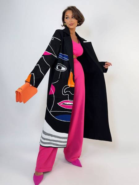 Introducing the perfect spring and early winter coat from VESHALKA's new collection. This stylish, oversized knit coat effortlessly blends classic elegance with contemporary trends. Crafted from a luxuriously soft wool-blend knit, it offers exceptional warmth and comfort without feeling bulky. The long, straight cut and relaxed fit are incredibly flattering, accommodating a range of body types and creating a sophisticated silhouette.