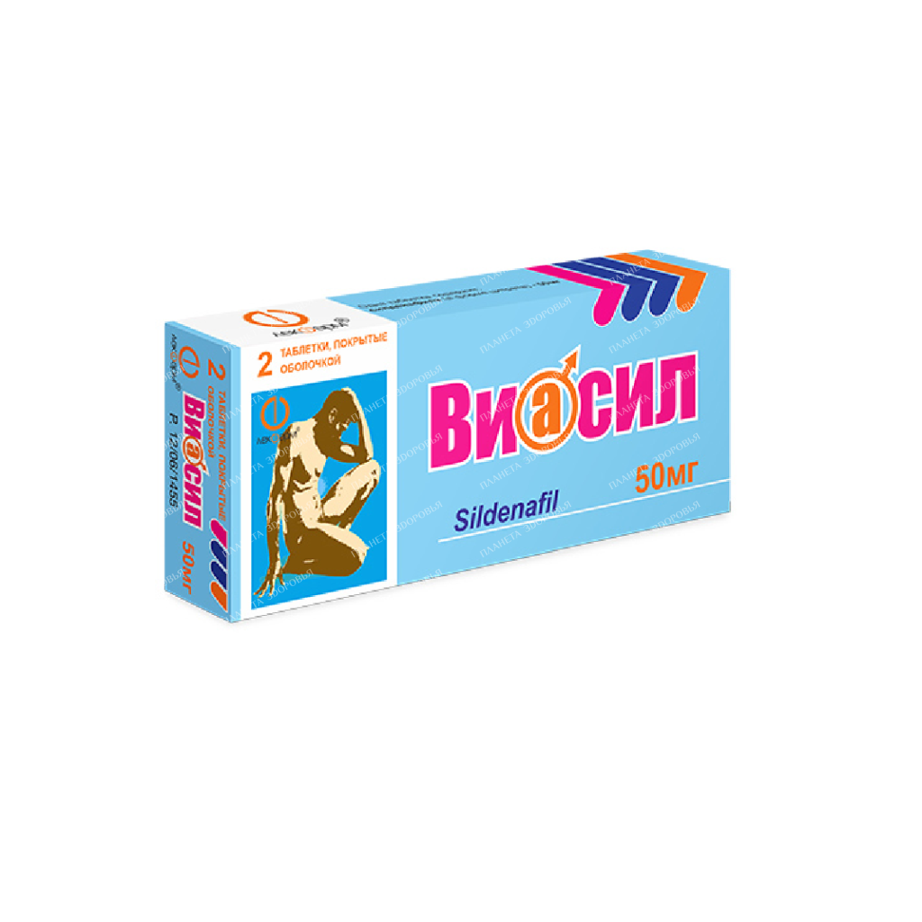 Name: Viasil tablets p / o 50 mg cont cell pack No. 2x1 Description: Film-coated tablets, blue in color, with a biconvex surface. The main active ingredient Sildenafil Release form Coated tablets. Dosage 50 mg Special instructions The drug is not intended for use in patients under the age of 18 years. Before you start taking the drug to diagnose erectile dysfunction, determine its possible causes and select adequate methods of treatment, you should collect a complete medical history and conduct a thorough urological and general clinical examination, especially in patients with concomitant cardiovascular diseases, in which increased sexual activity is undesirable (for example, severe forms of coronary heart disease and hypertension). Elderly patients are not recommended to prescribe high doses. Frequent (more than 1 time per day) use in high doses increases the risk of side effects. Patients with concomitant coronary heart disease are in the high-risk category. An assessment of the benefit/risk ratio is necessary in patients with heart failure, low circulating blood volume. Be wary appoint patients with arterial hypertension (BP 170/110 mm Hg. Art.) and arterial hypotension (BP 90/50 mm Hg. Art.). With extreme caution, it is prescribed to patients with concomitant arterial hypertension receiving multicomponent antihypertensive pharmacotherapy. Be wary appoint patients with diseases predisposing to the development of priapism (sickle cell anemia, multiple myeloma, leukemia). It is not recommended to combine with other drugs for the treatment of erectile dysfunction. Pharmacotherapeutic group Drugs for the treatment of erectile dysfunction. Indications for use Erectile dysfunction characterized by the inability to achieve or maintain an erection of the penis sufficient for satisfactory intercourse. Sildenafil requires sexual stimulation to be effective. Dosing and Administration Viasil tablets are taken orally. Use in Adults For most patients, the recommended dose is 50 mg taken 1 hour before sexual intercourse. Depending on the efficacy and tolerability of the drug, the dose may be increased to the maximum recommended dose of 100 mg or reduced to 25 mg. The frequency of taking the maximum recommended dose is 1 time per day. Use in elderly patients In patients over 65 years of age with hepatic and severe renal insufficiency, as well as with simultaneous use of potent inhibitors of cytochrome P450 3A4 (ketoconazole, itraconazole, erythromycin, saquinavir), it is recommended to use the drug at an initial dose of 25 mg, since higher concentrations in plasma can increase both the efficacy and the frequency of adverse reactions. Application in patients with impaired renal function In patients with impaired renal function of mild to moderate severity (creatinine clearance in the range of 30-80 ml / min), dose adjustment is not required. In connection with a decrease in the clearance of sildenafil in patients with severe renal impairment (creatinine clearance < 30 ml / min), a dose of 25 mg should be used. Use in patients with impaired liver function Since the clearance of sildenafil is reduced in patients with impaired liver function (for example, with cirrhosis), it is recommended to use a dose of 25 mg. Use in patients taking other drugs Given the data on the interaction of sildenafil while taking it with ritonavir, it is recommended not to exceed the maximum single dose of 25 mg of sildenafil within 48 hours. The use of sildenafil at an initial dose of 25 mg is recommended for patients receiving concomitant inhibitors of the CYP3A4 isoenzyme (for example, erythromycin, saquinavir, ketoconazole, itraconazole). In order to minimize the likelihood of developing postural hypotension, patients should be in a stable condition during treatment with alpha-blockers before starting the use of sildenafil. In addition, in such cases, it is recommended to start the use of sildenafil with lower doses. Use during pregnancy and lactation Sildenafil is not intended for use in women. In studies of the effect of sildenafil taken orally on reproductive function in rats and rabbits, no teratogenic effect, impaired fertility, or side effects on the peri- and postnatal development of the fetus and newborn were found. Appropriate controlled trials in women during pregnancy and lactation have not been conducted. Use in children Sildenafil is not indicated for use in children and adolescents (<18 years of age). Influence on the ability to drive vehicles and control mechanisms The effect of sildenafil on the ability to drive vehicles and control mechanisms has not been studied. In clinical trials of sildenafil, cases of dizziness and decreased vision have been reported, patients should be aware of the individual effect of the drug on the body before driving a car or operating machinery. Precautions With caution, prescribe the drug for anatomical deformity of the penis, multiple myeloma, acute leukemia, sickle cell anemia, increased bleeding tendency, hereditary retinitis pigmentosa, peptic ulcer of the stomach and duodenum in the acute stage, severe forms of arterial hypertension, anamnestic indications of the postponed in the previous 6 months, heart attack and stroke, life-threatening arrhythmias, heart failure, unstable angina. According to post-marketing studies, transient ischemic attacks coincided in time with the use of sildenafil. In the event of an erection that persists for more than 4 hours and priapism, the patient should immediately seek medical attention to avoid damage to the tissues of the penis and irreversible impotence. In clinical trials, it has been shown that sildenafil can cause systemic vasodilation, which leads to a transient decrease in blood pressure. For most patients, this has little to no effect. However, before prescribing sildenafil, the physician should carefully consider the possible consequences of such a vasodilating effect for this particular patient, taking into account his conditio