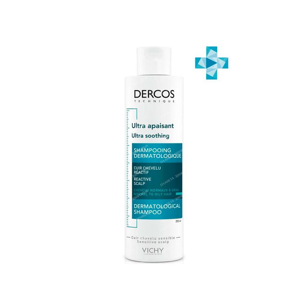 Vichy Dercos Technique Intensive Care Shampoo for Sensitive Scalp "Soothing" - Normal to Oily Hair (200ml)
