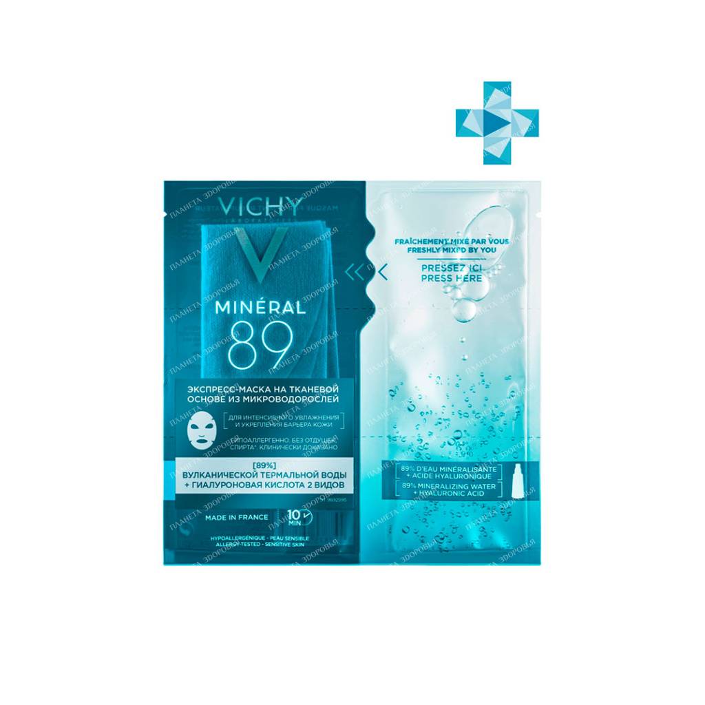 VICHY Mineral 89 Express Mask, microalgae sheet mask, intense hydration, skin barrier strengthening, 24-hour hydration, soothing, comforting, skin firmness, dehydration lines, Vichy skincare, face mask, sheet mask, skincare routine, hyaluronic acid, mineral-rich, skincare products, beauty products