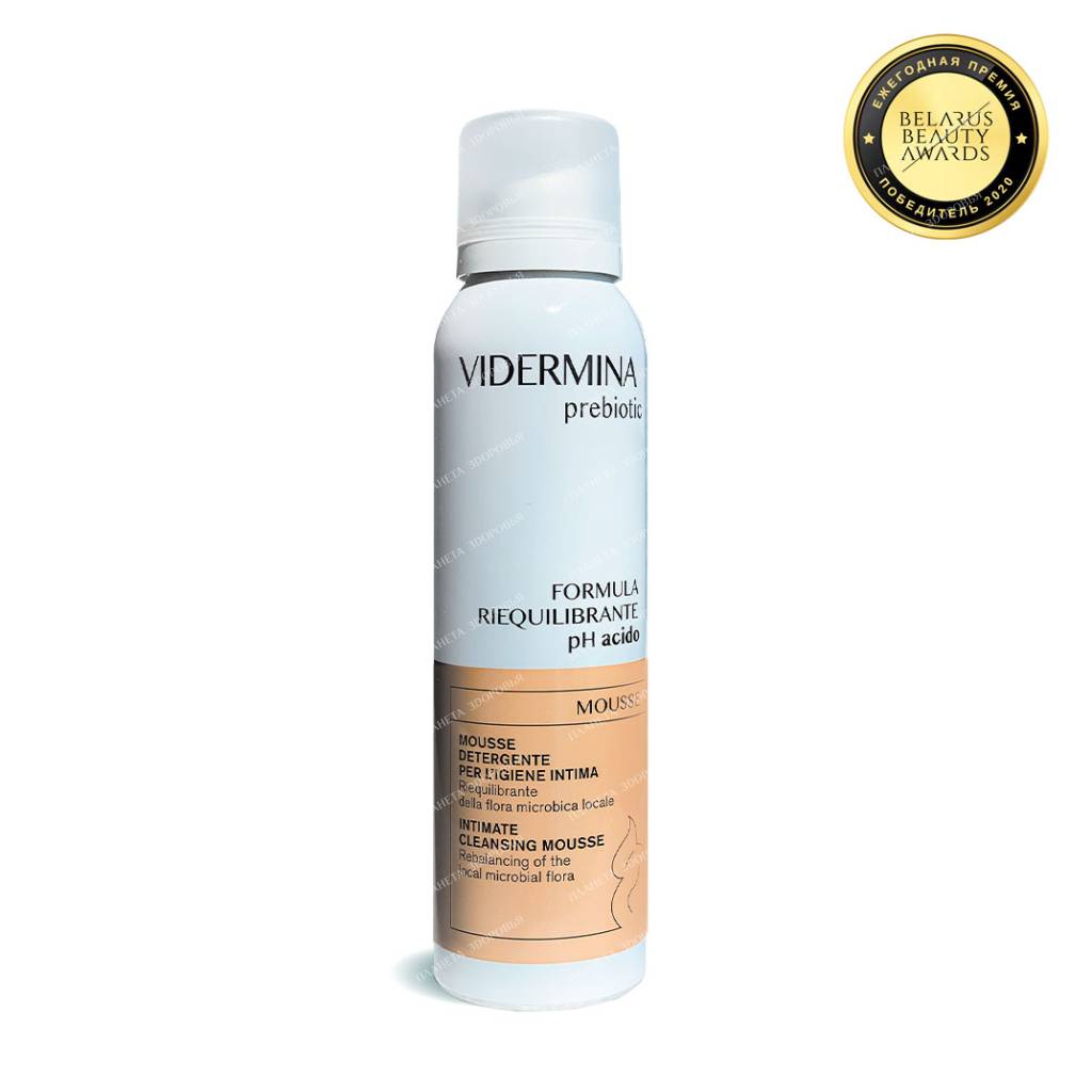 Vidermina brand — Winner in the category "Means for intimate hygiene" of the Belarus Beauty Awards 2020Product descriptionGentle intimate cleanser in the form of a soft mousse. Enriched with α-gluco-oligosaccharide, lactic acid and panthenol, it gently cleanses the skin while helping to balance the local microflora. Action • restores the balance of the microflora of the vagina, • regulates pH, • soothes and protects. Directions for useSuitable for daily use Buy Vidermina prebiotic Intimate Mousse, 150 ml