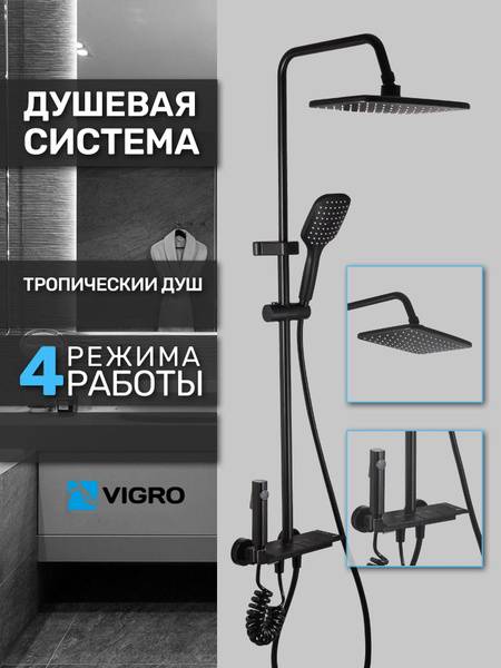 Indulge in the luxurious experience of the VIGRO VG2404-7 black rain shower system. This stylish and functional shower kit transforms your bathroom into a personal spa, offering unparalleled comfort and a sleek, modern design. The invigorating rain shower head delivers a soft, even water flow, creating the sensation of a natural waterfall for a truly relaxing shower experience.
