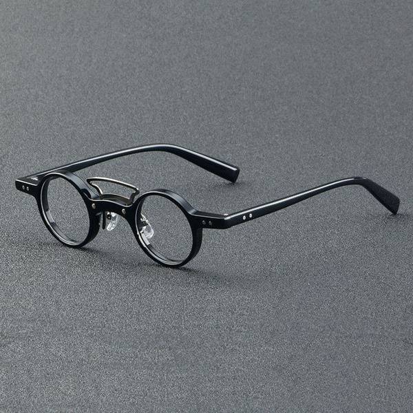 <img src="image1.jpg" alt="Vintage Round Eyeglasses"> <img src="image2.jpg" alt="Eyeglasses on Model">These vintage-inspired round eyeglasses offer a unique blend of classic style and modern design. The high-quality acetate frame provides both durability and a comfortable fit. The subtly feminine details add a touch of unexpected sophistication, making these glasses a perfect choice for the discerning gentleman who appreciates attention to detail and exceptional craftsmanship.