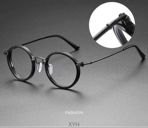 These stylish round eyeglasses feature a classic retro design inspired by Hong Kong cinema, British and French vintage styles. Available in black, black gold, and transparent green. Crafted from pure titanium for lightweight comfort and durability. Suitable for prescription lenses (nearsightedness) and blue light filtering lenses.