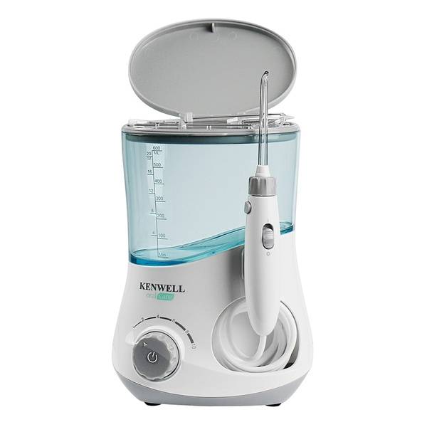 Experience comprehensive oral hygiene with the included 7 interchangeable nozzles: a standard nozzle, tongue cleaner, nasal nozzle, two periodontal nozzles for deep cleaning of gum pockets, and two orthodontic nozzles designed for effective cleaning around braces. The 360° nozzle rotation ensures thorough cleaning of all hard-to-reach areas. Conveniently store all your nozzles in the device's integrated storage compartment in the lid.