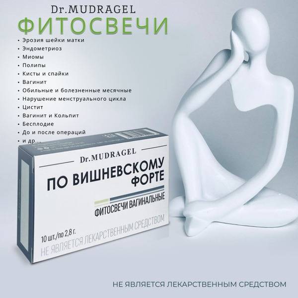 Description: Dr. Mudragel Vishnevsky Forte vaginal phyto-suppositories offer a unique and effective preventative herbal remedy with pronounced anti-inflammatory, resolvent, and analgesic properties. They serve as an adjunctive therapy for inflammatory, hormonal, and proliferative processes in the pelvic area, including: adnexitis, cervicitis, cervical erosion, endometriosis, cysts, adenomyosis, adhesions, fibroids, polyps, endometrial hyperplasia, endometritis, infertility, heavy menstrual bleeding, menstrual cycle irregularities, colpitis, vaginitis, Bartholinitis, cystitis, and pain. These suppositories are also beneficial in preparing for surgical procedures and during the recovery period after surgeries, intrauterine curettage, miscarriages, before and after hysteroscopy, polypectomy, myomectomy, as well as in pregnancy planning and IVF.