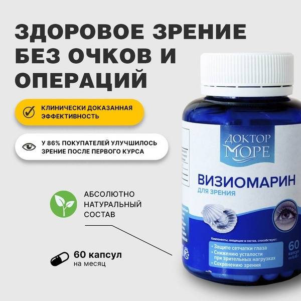 Keywords: Visiomarin, Dr. More, eye health supplement, eye vitamins, taurine, amino acids, Japanese sea scallops, digital eye strain, diabetic retinopathy, age-related macular degeneration, glaucoma, cataracts, dry eyes, eye fatigue, improved vision, night vision, 60 capsules, eye health, vision support, ocular health, retinal health, supplement, dietary supplement.