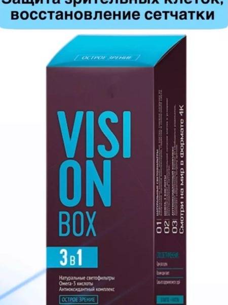 Keywords: Vision Box, eye health, eye vitamins, macular degeneration, antioxidants, omega-3, lutein, zeaxanthin, bilberry, digital eye strain, eye protection, vision supplement, daily pack, eye health supplement, sharp vision, clear vision, eye care.