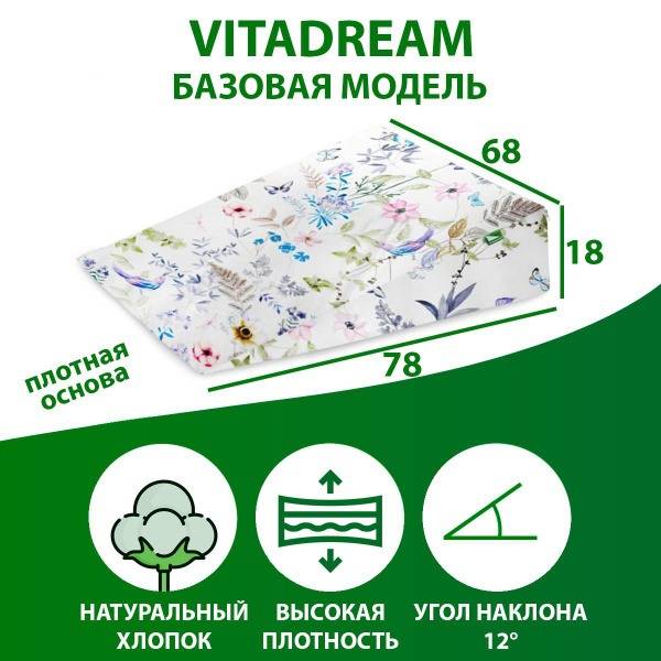 <img src="image1.jpg" alt="VITADREAM Wedge Pillow - Front View"> <img src="image2.jpg" alt="VITADREAM Wedge Pillow - Side View"> <img src="image3.jpg" alt="VITADREAM Wedge Pillow - Close-up">