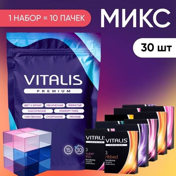 Experience ultimate variety with the Vitalis PREMIUM Mix Pack Condoms. This 30-count pack offers 8 unique condom types, designed to enhance intimacy and pleasure. Explore a diverse range of sensations, including textured, ribbed, dotted, anatomical, ultra-thin, extra-strong, colored, and larger condoms.