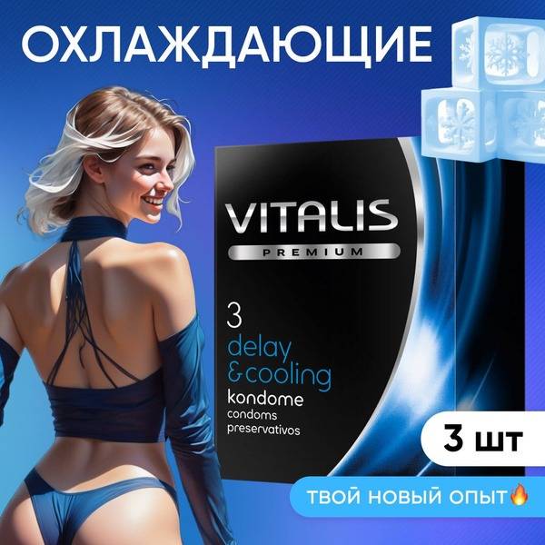 Experience enhanced pleasure with Vitalis PREMIUM Delay & Cooling Condoms. These condoms offer a refreshing cooling sensation and a subtle mint aroma for an extra touch of freshness. Perfect for exploring diverse sexual experiences, they provide extended intimacy thanks to a unique formula. The silicone-based lubricant, free from latex odor, ensures naturally stimulating sensations and exceptional comfort. Made in Germany, these condoms offer reliable protection and are hypoallergenic, suitable even for sensitive skin. Conveniently packaged in a 3-pack, Vitalis PREMIUM condoms are always ready when you are.