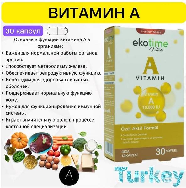 Ekotime Vitals Vitamin A 10,000 IU - Retinyl Palmitate (Made in Turkey)