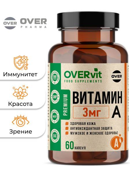 OVERvit Vitamin A – your key to vibrant health, youthful vitality, and radiant beauty! Our dietary supplement contains 60 capsules (420mg ± 15% per capsule).