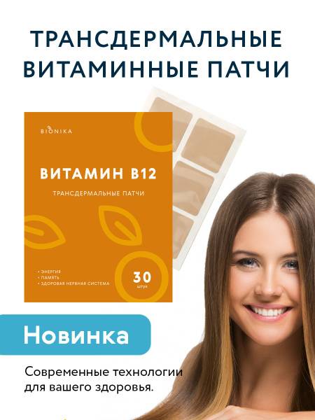 Keywords: transdermal vitamin b12 patches, vitamin b12 patch, vitamin b12 supplement, b12 supplement, transdermal patch, nutrient delivery, maximum absorption, no digestive upset, sensitive stomach, easy to use, sustained release, BIONIKA, vitamin c, vitamin b6, folic acid, guarana, vitamin b3, garcinia cambogia, 30 count, monthly supply, energy boost, brain health, nervous system health.