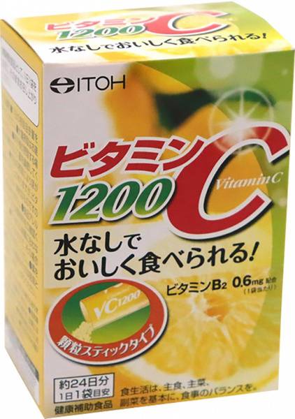 Description: Boost your immunity with ITOH Vitamin C 1200mg, a high-potency supplement from Japan. Each convenient 2g sachet delivers a powerful dose of ascorbic acid, a potent antioxidant that supports your body's natural defenses against colds, flu, sore throats, and other viral and bacterial infections. A 24-sachet pack provides a month's supply of this essential nutrient for optimal health and well-being.