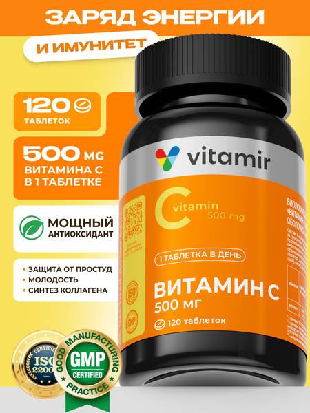 VITAMIR PRO Vitamin C 500mg tablets offer a potent dose of this essential nutrient for comprehensive health support. Each tablet delivers 500mg of natural ascorbic acid, ensuring optimal bioavailability for maximum effectiveness. This high-quality supplement is formulated to: