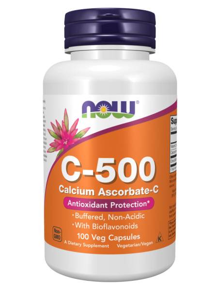 Description: NOW Vitamin C-500 Ascorbate provides 500mg of Vitamin C per capsule, supporting a healthy immune system. This essential nutrient is crucial for collagen production, vital for healthy skin, bones, and joints. Vitamin C also plays a key role in amino acid metabolism, neurotransmitter synthesis, and the utilization of vital nutrients like folic acid and iron. Consult your physician before use, especially if pregnant, breastfeeding, or have known allergies. Store in a cool, dry place, away from direct sunlight and out of reach of children.