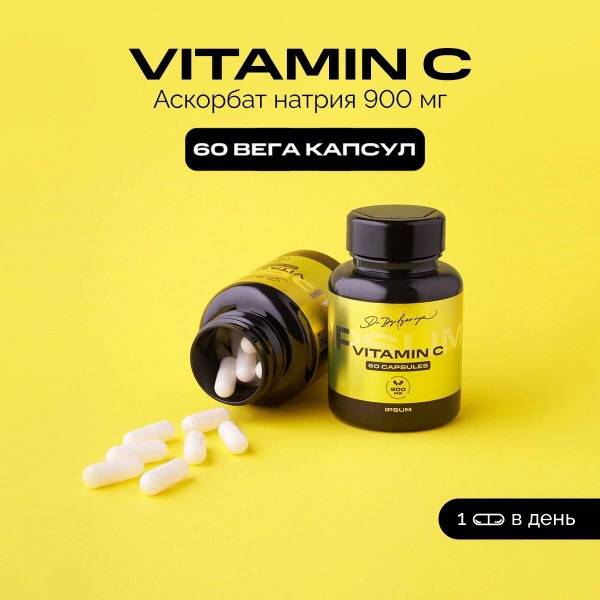 Vitamin C, 900mg, sodium ascorbate, immune support, antioxidant, collagen, skin health, cardiovascular health, joint health, hair health, IPSUM, Dr. Alexander Dzidzariya, supplement, high potency, bioavailability, cold and flu, free radical damage, pregnancy, breastfeeding, athletes, stress, fatigue.