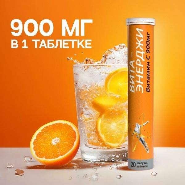 Vita-Energy Vitamin C Effervescent Tablets - 900mg, Sugar-Free, 20 Tablets