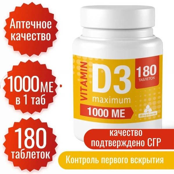 Vitamin D3, Vitamin D, 1000 IU, 180 tablets, 360 days, Myopharm, cholecalciferol, bone health, muscle health, immune system, nervous system, cardiovascular health, reproductive health, metabolic health, energy, supplement, dietary supplement, men's health, women's health, hair growth, skin health, nail health, Russia, pharmacy.