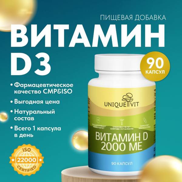 UNIQUEVIT Vitamin D3 2000 IU for adults is a premium quality, gender-neutral vitamin and mineral supplement. The composition uses safe raw materials, and the dietary supplement is certified. It contains no sugar or GMOs and is odorless. Vitamin D plays a vital role in maintaining health: