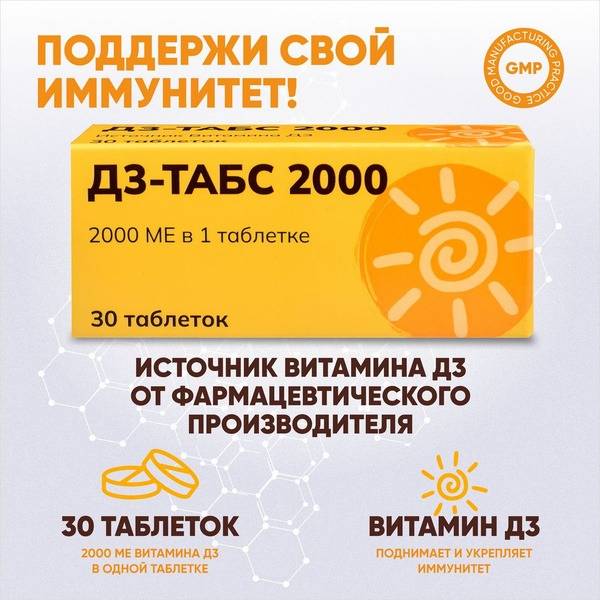 D3-Tabs 2000 provides 2000 IU of Vitamin D3 per capsule, supporting a robust immune system and helping to combat colds and flu. Vitamin D3 (cholecalciferol) stimulates immune response against bacteria and viruses, reducing inflammation. It also strengthens bones by improving calcium and phosphorus absorption, positively influences reproductive health, and promotes nerve regeneration. D3-Tabs 2000 is ideal for maintaining overall health and supporting your immune system, particularly during cold and flu season. Each capsule weighs 230mg.