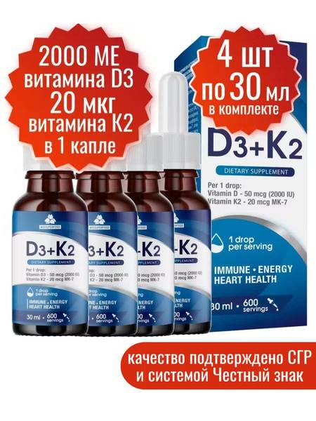 Miosuperfood Vitamin D3 + K2 drops offer a powerful combination of 2000 IU Vitamin D3 and 20 mcg Vitamin K2 for optimal absorption and enhanced benefits. This synergistic blend supports a strong immune system, reduces the risk of colds, promotes calcium absorption, increases energy levels, improves overall tone, and strengthens hair, nails, and skin, helping prevent premature aging.