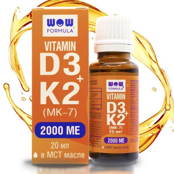 Vitamin D3, Vitamin K2, MK-7, Menaquinone-7, Cholecalciferol, Bone Health, Heart Health, Immune System, Oil Solution, Supplement, Dietary Supplement, WOW FORMULA, 2000 IU, 20 mcg, Osteoporosis, Calcium Absorption, Cardiovascular Health, Natural Ingredients, Coconut Oil.