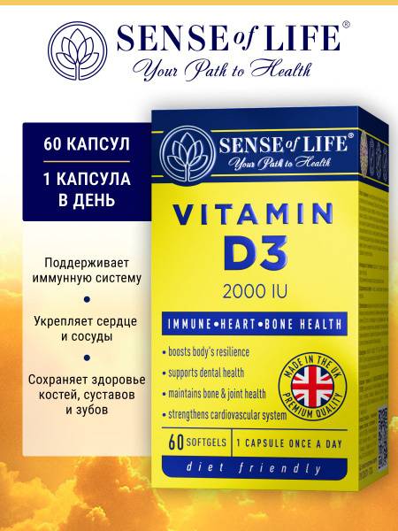 Keywords: Vitamin D3, Vitamin D, 2000 IU, Supplement, Sense of Life, Bone Health, Immune Support, Mood Booster, High Bioavailability, Non-GMO, Gluten-Free, UK Made, Dietary Supplement, Cholecalciferol, Osteoporosis, Calcium Absorption, Immune System, Serotonin, Dopamine, Health Supplement, Wellness, Men's Health, Women's Health.