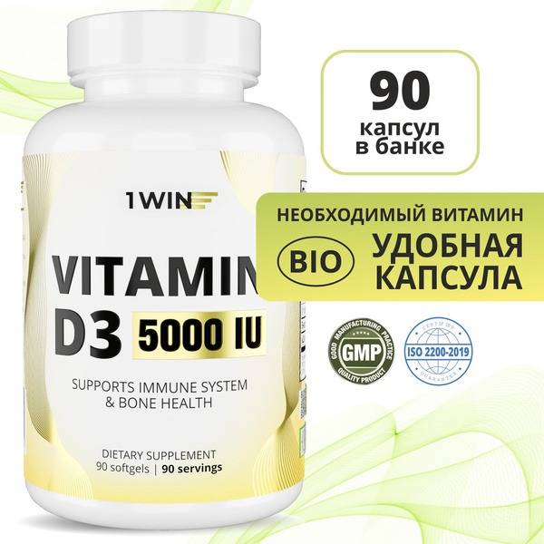 Combat vitamin D deficiency with 1WIN's high-potency Vitamin D3 5000 IU supplement. Each capsule delivers 125 mcg (5000 IU) of cholecalciferol (Vitamin D3) in a highly bioavailable oil-based formula for rapid absorption and effective relief from vitamin D insufficiency. Boost your immune system, reduce the risk of respiratory complications, and support strong bones, teeth, and joints through enhanced calcium and phosphorus absorption. Experience the benefits of normalized metabolism and improved nervous, endocrine, and cardiovascular system function. Vitamin D3 also plays a crucial role in serotonin production, helping to alleviate symptoms of depression, boost energy levels, and elevate mood. This 90-capsule supply provides a convenient, one-capsule-per-day regimen. Consult a healthcare professional to determine the appropriate dosage and duration of use; a minimum of one month is recommended.