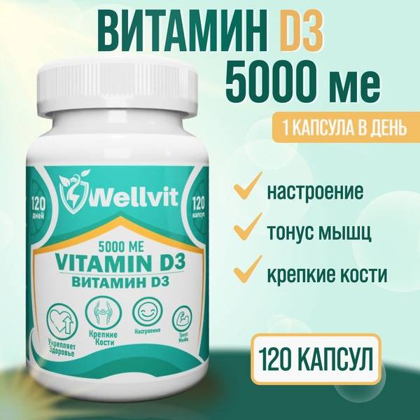 WELLVIT Vitamin D3 5000 IU: High-Potency Supplement for Immune Support & Bone Health (120 Capsules)