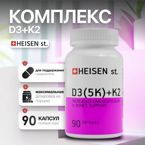 SEO Keywords: Vitamin D3, Vitamin K2, D3 5000 IU, K2 120 mcg, bone health, immune system, dietary supplement, Swiss made, HEISEN, calcium absorption, supplement capsules, vitamin D3 benefits, vitamin K2 benefits, bone health supplement, immune support supplement.