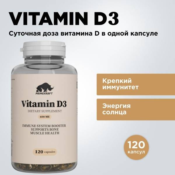 PrimeKraft Vitamin D3 600 IU (cholecalciferol) is a high-quality supplement offering a convenient and effective way to maintain optimal Vitamin D levels. Often referred to as the "sunshine vitamin," Vitamin D3 plays a crucial role in numerous bodily functions. Our oil-based formula ensures superior absorption, maximizing the benefits of each capsule.
