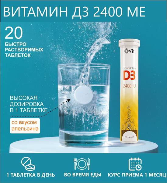 Keywords: Vitamin D3, Cholecalciferol, 2400 IU, Effervescent Tablets, Immune Support, Bone Health, Calcium Absorption, Muscle Function, Nervous System, Vitamin D Deficiency, Supplement, Dietary Supplement, Elderly, Winter, Sun Exposure, Indoor Lifestyle, Health, Wellness, Improved Absorption, Delicious Taste, 20 Tablets, 3.8g Tablet