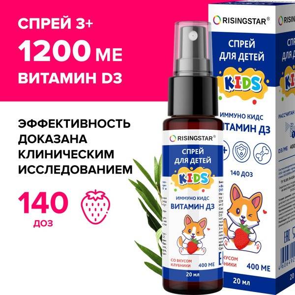 A delicious strawberry-flavored oral spray for children aged 3 and up. Formulated without preservatives or artificial colors, it's pediatrician-recommended for rickets prevention and overall health improvement. Vitamin D3 enhances calcium absorption in the gut, promoting strong bones and teeth, healthy skeletal growth, and robust enamel. It regulates the expression of over 200 genes, supporting muscle function, posture, gait, and physical performance. This also contributes to enhanced cognitive abilities, including learning, reasoning, memory, and speech development. By participating in polypeptide synthesis, it strengthens the immune system. Give children aged 3+ one spray per day directly into the mouth, or as directed by a physician. 20ml bottle.