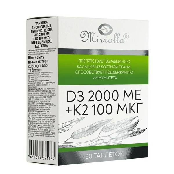 Mirrolla Vitamin D3 (2000 IU) + K2 (100 mcg) offers a powerful combination of essential vitamins to support your overall well-being. Each tablet delivers 2000 International Units (IU) of Vitamin D3 and 100 micrograms (mcg) of Vitamin K2.