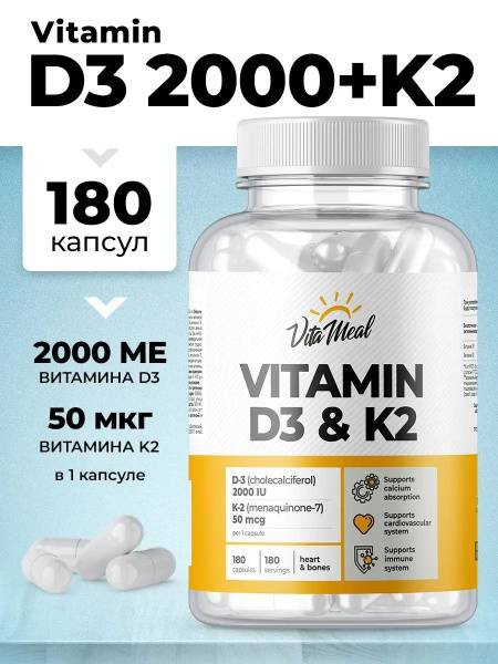 Title: VitaMeal Vitamin D3 & K2 (2000 IU) - 180 Capsules for Immune Support & Bone Health