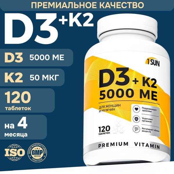 ONE SUN Vitamin D3 & K2 5000 IU provides a synergistic blend of essential vitamins for comprehensive health benefits. Each tablet delivers 5000 International Units (IU) of Vitamin D3 and the crucial Vitamin K2, working together to optimize calcium utilization within the body.